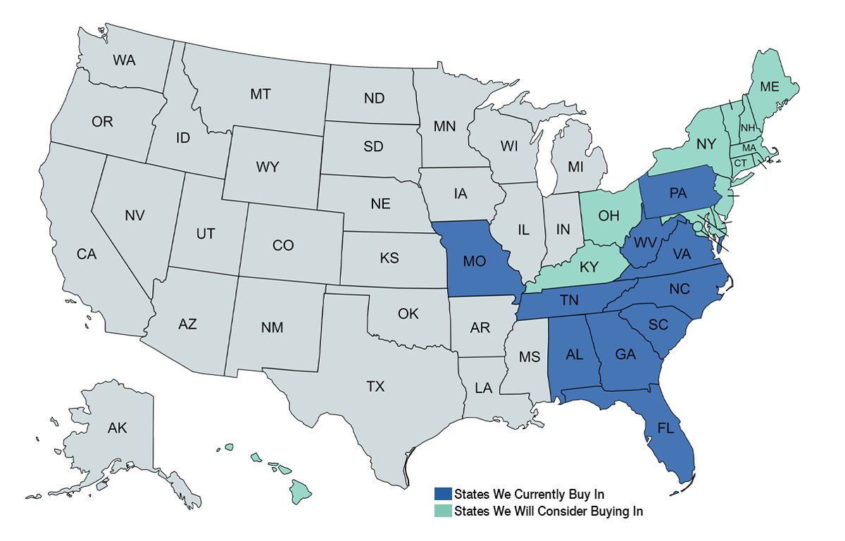 We are based in the Northern Virginia area, just 30 miles west of Washington DC, and due to our location, we currently specializes in aggressively investing in the Northeast, Mid-Atlantic, and Southeast regions of the U.S.